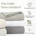 PREMIUM WAFFLE WEAVE THROW BLANKET: These luxurious throws and blankets are made from 100% premium ring spun cotton. Spinning long-staple cotton fibers into superior, soft, and durable yarns creates the premium fabric that is found in luxurious high-quality woven blankets.