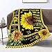 🌻UNIQUE DESIGN: Domgoge sunflower butterfly blankets, designed on a black background, decor with sunflower and butterfly pattern, printed with positive healing words, such as, never stop exploring, warm, brave, simile, great healing sunflower gift for women, girls