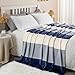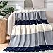 UNIQUE DESIGN & HOME DECOR - The 50x60 inch Navy Blue and Cream stripe Throw Blanket offers the perfect balance of cozy and pretty style. Decorate your home with the sumptuous texture and style Throws. Proper blanket size can be for many scenarios use and be the perfect decoration that uplifts the style of your Bedrooms, Living Rooms, Bedding, Sofa, Couch, Car and Offices.