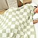 Ultra Soft Checkered Blanket Cozy Buffalo Check Throw Fluffy Knitted Reversible Throw Blanket Lightweight Fleece Checkerboard Grid Blanket For Sofa Couch Bed Travel, Sage Green, 51''X63''