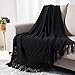 【FANTASTICAL DESGIN】LIFEIN throw blanket for couch nicely textured knit design and well-arranged rustic farmhouse style fringes, this knitted throw blanket is in black, which is a pretty easy way to match your room to add an extra solid dark/black boho feature, don't you want have a black throw blanket for your home decor?