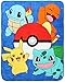 VIVID COLORS AND DETAILED CHARACTER DESIGN: The soft plush throw blanket features a fun design of 4 of the most popular character from the series, Pikachu, Charmander, Bulbasaur, and Squirtle. The blanket design has a high-quality binding around all the edges to help keep your blanket from getting those unwanted and unsightly tears