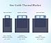 It has excellent INSULATING and THERMAL qualities due to microscopic air pockets inside, making it lighter but still very warm. It comes in a 71"L x 51"W size so you can cover yourself royally at home or on the go.