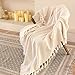 UNIQUE DESIGN - This beige throw blanket for couch and bed has hand knotted tassel, the classic color and special design give your living room and bedroom a vintage and trendy decor. Our white throw blanket measures 50” x 60” inches, which allow you to use it in a variety of places.