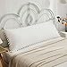 VALUE BUNDLE-The set contains 1 white seersucker comforter 104"x90",2 matching pillowcases 20"x36" and 1 cute pom pom fringed beige body pillow cover 20"x54". Tips-Pillow inserts are not included.