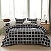 【SIZE】: Queen Comforter Set includes: 1 black grid comforter measures 90*90 inches and 2 pillow cases measure 20*30 inches.