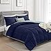 SOFT AND COZY FABRIC: This pintuck comforter is made from high-quality microfiber, which is extremely soft and cozy. The navy blue comforter is filled with down alternative microfiber, which is lightweight to reach a perfect balance between warmth and comfort, brings you a good and sound sleep.
