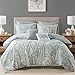 This comforter features an updated paisley pattern inside an ogee design, creating an elegant look.
