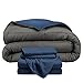 PACKAGE INCLUDES: 1x Dark Blue/Grey King/Cal King Reversible Comforter (106" x 94"), 1x Dark Blue California King 4 Piece Sheet Set: 1x Cal King Fitted Sheet (72" x 84" x 15"), 1x Cal King Flat Sheet (108" x 102") and 2x Pillowcases (King Size, 20" x 40").
