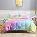 [Queen Size Comforter Set]: The 3pcs rainbow full/queen bedding sets come with 1 comforter(88”x88”) and 2 pillow cases(20”x30”). Warm Tips: The rainbow ombre comforter is vacuum packaged, please kindly expose it in the sun and pat gently for a few times for fluffy.