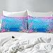 【Features】This Mermaid Fish Scale Duvet Cover for Kids Girls Gift Bedding Collection is Printing by Reactive Dyeing, Vibrant in Color and No Fade Issue.Good for Sensitive Skin.Hidden Zipper Closure and Corner Ties,Easy And Efficient To Put This Duvet Cover On Your Comforter.