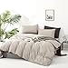 [Two-Tone and Lightweight] This Reversible california king size comforter sets brown can be flipped between the brown and the beige side based on your room requirements and mood making it ideal for home decoration. The bedding comforter set filled with WHOLE-PIECE MICROFIBER, so the brown beige lightweight comforter set cal-king is light weight and warm perfect for all seasons: summer, spring, fall, winter