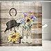 SIZE--69WX70H (inch) Rustic Sunflower Shower Curtain, suitable for most bathtubs, No liner needed, included 12 plastic hooks.