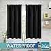 BLACKOUT FABRIC:These draperies are made of microfiber polyester material.Black yarn woven within two soft solid plain colored layers making the curtains 85-100% blackout performance.White color is about 85% black-out.Black color is about 99%-100%.