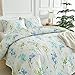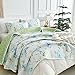 DESIGN DETAILS: White quilt set with modern leaves floral desgin. Simple botanical quilt set with Blue Flowers and Green leaves. The Reversible side is Green pattern. Great for most bedding room style. Soft and comfortable Floral Quilt bedspread coverlet Set. Reversible 3PC design and suitable for your bedroom, guest room, children's room, holiday house, dormitory,etc.