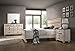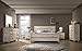 Rustic, urban chic style bedroom set with white wash finish, contrasting with the delicate metal ring and nob handles