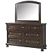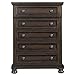 Set includes: King bed, dresser, mirror, Nightstand. The attractive bed features a paneled headboard accented with Antique walnut Top trim for an eye-popping look. Chest: 35.15"W x 16.75"D x 53.12"H.