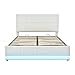 【Solid Construction Queen Bed】- This Queen Size Upholstered Faux Leather Platform Bed Frame made of solid pine wood and particle board , the LED platform bed provides a dense and strong support for up to 600 lbs. The faux leather queen bed creates a strong foundation and reliable support from one restful night to another, its durable construction promotes long-lasting performance and enjoyment.