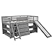 【Space-saving Junior Loft Bed with Storage】: Loft Design opens up floor space. Total footprint (including stairs) 77.4"L x 41.7"W x44.7"H; At 44.7" high its ideal for low ceilings. When the desk is needed, simply pull it out from under the loft for more workspace and an instant engaging underside fort area for your child to play in and let their imagination run wild.