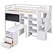 【Designed for Your Child’s Safety】: The loft bed with stairs and storage perfectly serves homes with limited space. It takes advantage of the floor space, allows for a cozy rest, extra work, and play space, and makes a great piece of furniture for growing families. The upper bunk has high rails to ensure secure and worry-free nights. The stairs makes it easy for children to climb up and down from the upper bed.
