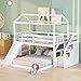 【House Bunk Beds Twin Over Full】: This twin over full bunk bed crafted with a playhouse design, bottom bed on the floor, fit those have small children, especially toddlers. Our wood house bunk bed frame comes with stairs and slide, sleek and space-saving design adds a touch of elegance to your kids bedroom.