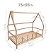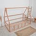 SPECIFICATION - This toddler house bed is for the mattress size US twin size 39x75 in. The total bed height is 61.02in. Outer frame 77.56x41.53in. The roof starts at 37.8in. The wood used is 1.18x1.58in wide. Order includes a house bed frame with rails/ fences on 2 short and 1 long side, is WITHOUT slats under the mattress. The order doesn't include the mattress or accessories from the photos.