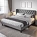 MODERN UPHOLSTERED PLATFORM BED: Exquisite button tufted headboard with wingback design can match a variety of bedroom styles perfectly. The fabric material has strong breathability and brings you a skin-friendly touch.