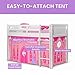 Curtain sets can be purchased separately to add to the fun by dressing up the loft bed as a fort, bakery, and more.