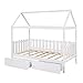 🛌【Solid Construction Kids House Bed】The twin house platform bed Crafted from high-quality solid pine wood can last for long time use. The bed are both supported by 8 plywood slats, no box spring box is needed. The roof and drawers are made from MDF boards, ensuring strong stability and durability.