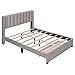 [No Box Spring required] With 24 reinforced slats, the mattress (not included) will be well supported and your body weight will be evenly distributed for a great sleeping experience. Enjoy the convenience and unparalleled ease of use that this queen size wood platform bed provides. Headboard is included as a comfy linen fabric backrest that brings you and your partner a cozy feeling.