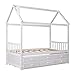 [Maximized space] The house bed with handy pull-out trundle and three functioning drawers takes up minimal space for the spontaneous sleepover guest. The trundle and drawers can easily be pulled in and out for maximum storage space, perfect for organizing anything from clothes and bed linens to toys and games. Such a versatile piece, bringing functionality, versatility, and style to your home, perfect for those who have lots of visitors.