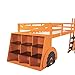 【Solid Construction Forklift Car Bed】:Our stylish low loft bed frame made of solid pine wood and artificial wood with a beautiful surface. Sturdy enough, suitable for children, without squeaking and sliding sound. The kids loft bed frame with Full-length guardrails on the upper bunk prevent accidental falls. The built-in shelves tightly attaches to the bed for easy access and wobble-free footing to the upper bed.