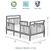 SIZE: Assembled dimensions: 53.94" L x 29.13" W x 26.18" H; Easy assembly; Uses a standard crib mattress (sold separately)