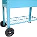 Durable steel construction: Elevated garden cart is made from durable 1.5 millimeter-thick steel with a blue hot-dip galvanized finish; Adds a fun pop of color to any garden, patio, or deck; Planter area has 1-inch diameter drainage holes and a 110-pound weight capacity; Planter can hold approximately 2.25 cubic feet of soil; Bottom shelf has 65-pound weight capacity; Overall weight capacity of 175 pounds