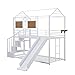 [House Bunk Beds with Slide] House-Shaped roof, ladders, slide can be put on both side, always be able to accommodate a variety of furniture arrangements in your child’s bedroom.