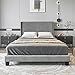 WINGBACK HEADBOARD- Has a lint-surfaced with rectangular tufting for a classy look. The wingback design conforms to human body and offers you more comfort when relax..STURDY AND STABLE CONSTRUCTION- Features a thick & sturdy metal frame constructed from premium iron to provide product with a longer lifespan; The well-selected wood is sturdy and supports mattress stably. The bed frame can support up to 400 lbs(Full size)/ 500lbs(Queen Size).