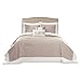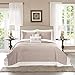 The soft khaki is accented with large quilting in a medallion pattern while a large ivory border for a deluxe 'hotel style' bedding.