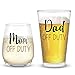 COUPLE GLASS SET: Including one Mom Off Duty stemless wine glass and one Dad Off Duty beer glass, this special glass set makes a perfect gift for dad, mom, husband, wife, girlfriend, boyfriend, lover, him, her, couples, newlyweds, bride and groom.
