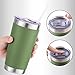 【Screw-On Leakproof Lid】: Spill proof travel coffee mug with screw-in cup lid is equipped with a sealing ring, which provides a good leak-proof effect. These coffee mugs have been mindfully powder coated matte surfacecomfortable to touch. Open sip hole makes it easier to drink during your travel.