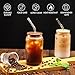 ✔【Large Capacity & Easy to Clean】This Drinking glass holds 16oz/450ml of beer or iced coffee, and the glass straw is reusable, you're sure to have a great drinking experience. Compared with ordinary cups, our glass is very transparent, with a wide mouth design, smoother edges, and does not leave any residue. With the included cleaning brush, you can easily clean long straws.