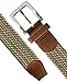 Belt width: 1-3/8" (35mm) wide, features leather inlay and Zinc buckle durable woven design with classic prong buckle.