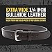EXTRA THICK 1 3/4 INCH BULLHIDE LEATHER! Made from one solid piece of top grain leather it will not crack, peel, or roll like layered or bonded belts will. Made to outperform all of your expectations in the harshest environments. Great for Open Carry as well.