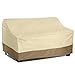 ADJUSTABLE AND CONVENIENT WINDPROOF OUTDOOR PATIO LOVESEAT/SOFA COVER: The pull-down elastic drawstring and 4 adjustable quick-release buckles lock the cover firmly at its place. Two reinforced handles make it easy to put on or remove. The specially designed air vent reduces water vapor accumulation inside.