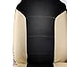 A set of front, 40/60 split bench, black and tan truck seat covers for a 1997 to 2000 Ford F150 with an opening center console. Covers the headrest and seat in one piece. Console cover is included.