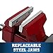 Built to Last: The swivel vise is forged from sturdy 60,000 PSI ductile iron, with a powder coating on the surface for a rust-proof finish. High-quality nuts and screws increase durability. Replaceable serrated jaw plates are made of premium carbon steel for superior grip. Go above and beyond and knock out all those tough projects!