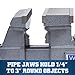 Multifunctional Sturdy Jaw: The multi-jaw fits both flat material and pipe or tube workpiece. Pipe Clamping Diameter: 0.6"-2.9" / 1.5-7.4 cm. It is perfect for small projects and is highly adept at securing tools for sharpening, grinding, cutting, tapping, etc.