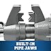 ADAPTABLE GRIPPING: Built-in pipe jaws handle a range of pipe sizes (1/4" to 3")