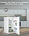 【Compact Refrigerator】 - This space saving small refrigerator (20.3" x 22.2" x 32.1") stores food, soda, beer, and other beverages without taking up too much space. The sleek, modern design - available in black and white - is perfect for college dorm rooms, offices, garages, home bars, small apartments, and RV campers.