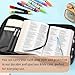 STRUCTURE AND ORGANIZATION FUNCTION: Convenient carry handle is easy to hold for easy travel to church or Bible study. Interior pockets protect your pens, highlighters, bookmarks, and notebooks, etc. The Interior pen loop secures your pen or highlighter when not in use. The two marking ribbons are convenient and stylish. Simply place them in passages so you know exactly where you left off.