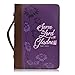 👍 STYLISH — Purple two-tone Bible cover with Scripture reading "Serve The Lord with Gladness. - Psalm 100:2" on the front cover and features a cross zipper-pull, a convenient lay-flat spine handle, and 2 pen loops inside.
